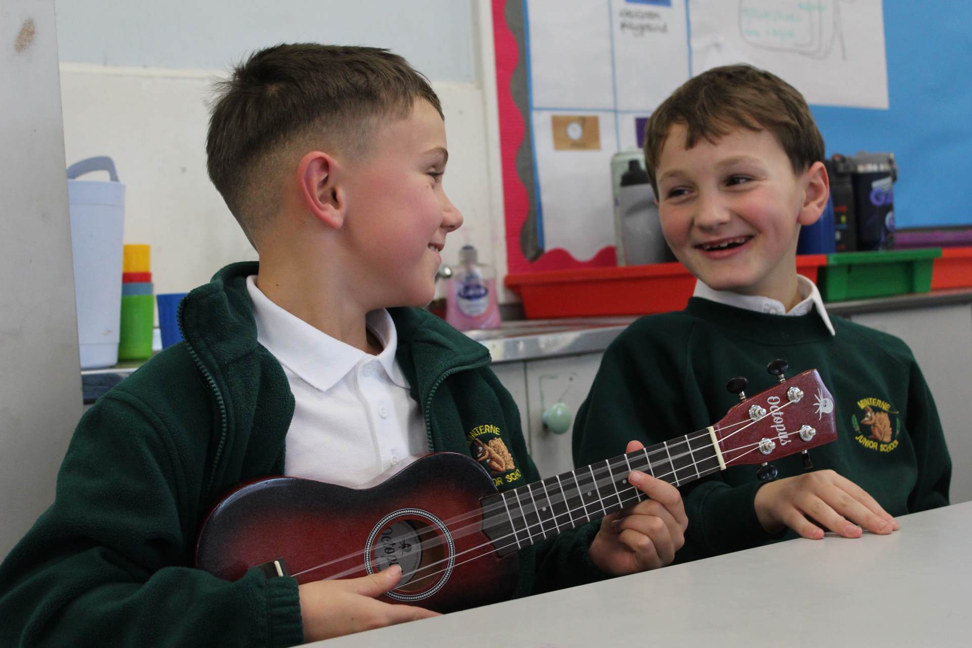 Currently, children in Year 3 are given whole-class instrumental tuition on the ukulele.